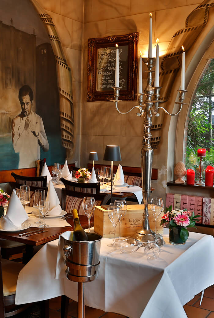 Erleben Sie bei uns die wahre italienische Gastfreundschaft in einem Ambiente, das Tradition und Moderne vereint. Ob bei Kerzenschein und erlesenen Weinen im Restaurant oder in der lichtdurchfluteten Atmosphäre unserer Terrasse – wir entführen Sie auf eine sinnliche Reise durch die Aromen Italiens. Genießen Sie das Dolce Vita mit allen Sinnen und lassen Sie sich von kulinarischer Finesse verzaubern.