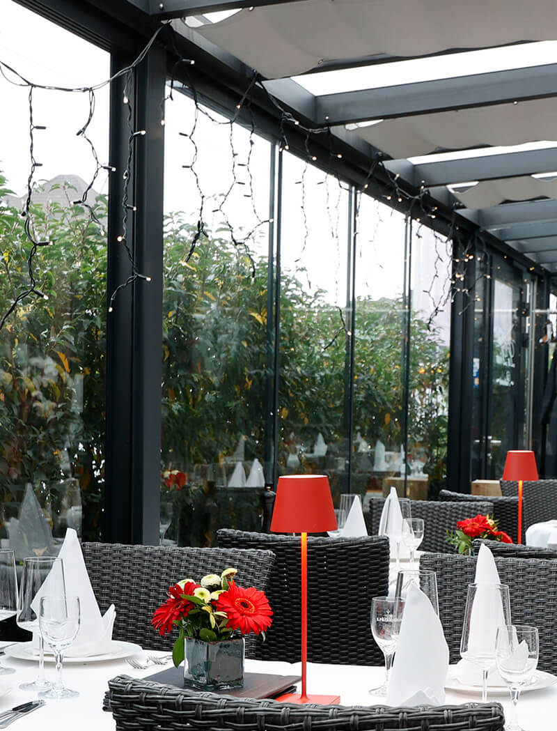 Vom romantischen Dinner bis zur großen Gesellschaft: Unsere Räumlichkeiten bieten Platz für bis zu 80 Personen und den idealen Rahmen für private oder geschäftliche Events. Wir gestalten Ihr Fest individuell mit italienischer Herzlichkeit und erstklassiger Küche. Genießen Sie gesellige Stunden – bei gutem Wetter auch auf unserer geschützten Terrasse mit freiem Blick in den Himmel, umgeben von mediterranen Düften.